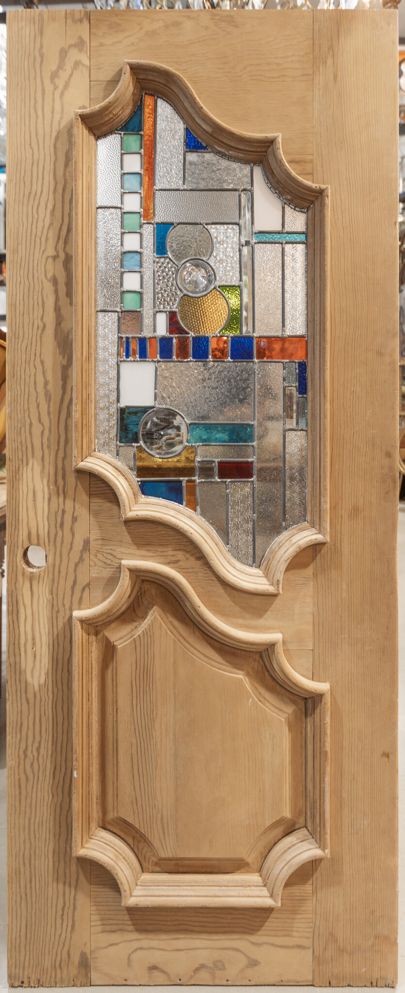 1 Panel Door with Frank Lloyd Inspired Stained Glass Design