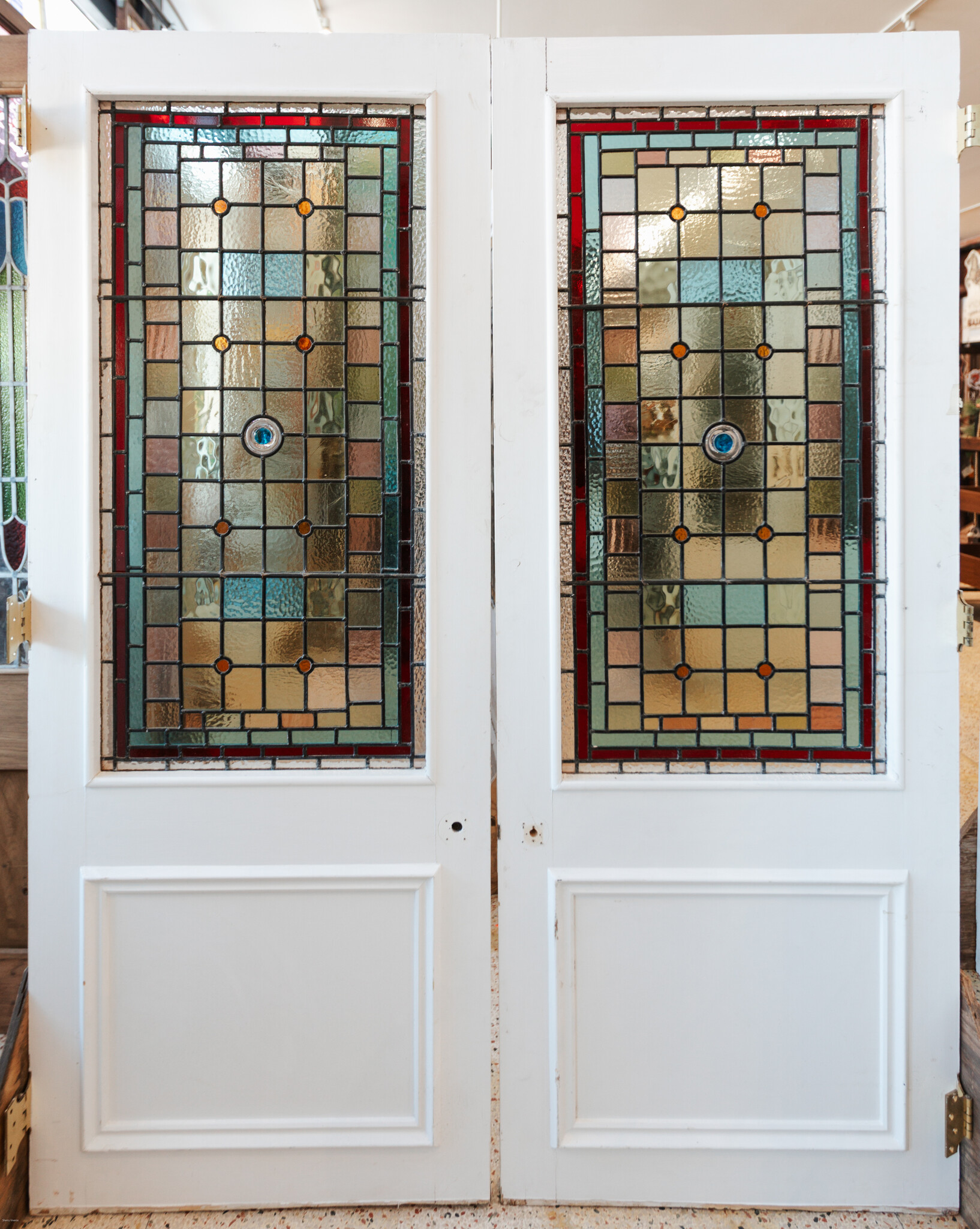 Multi-Colored Victorian Stained Glass Double Doors from England