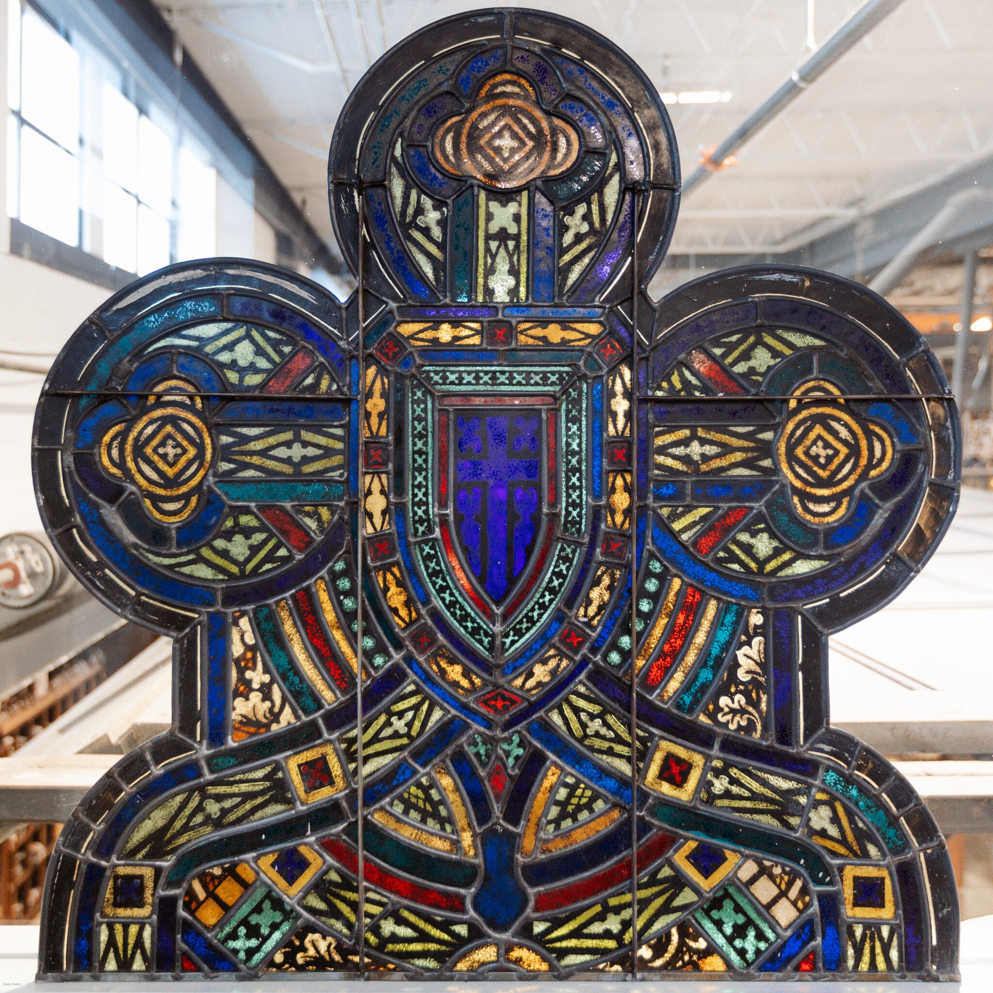 Re-leaded 1800's Trefoil Hand Painted and Kiln fired Glass No.2